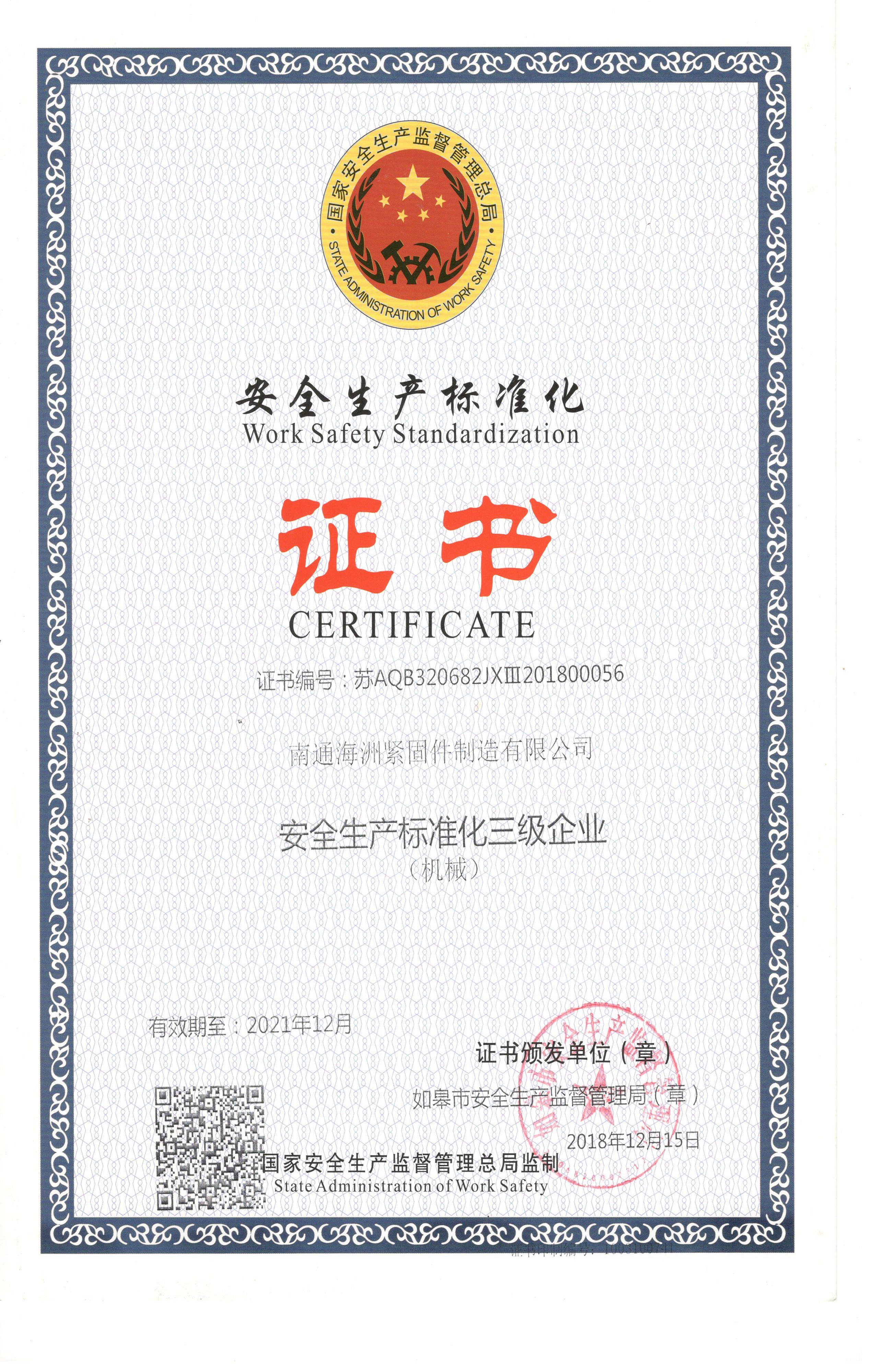安全生产标准化证书