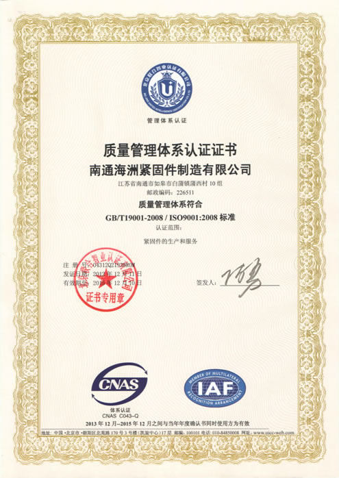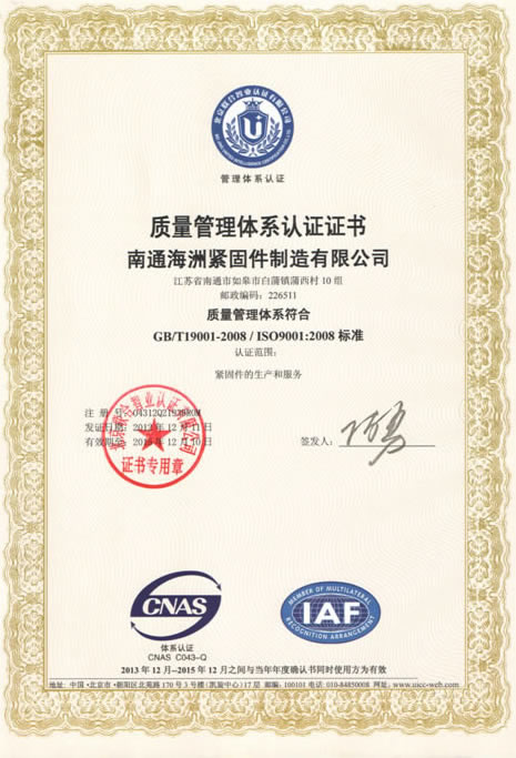 质量管理体系认证证书