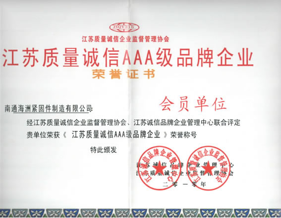 江苏质量诚信AAA级品牌企业